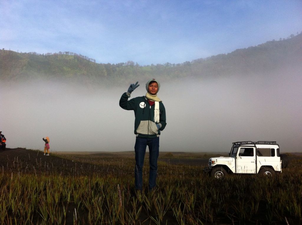 Tapi semua itu terbalaskan ketika saya sampai ke Bromo. Untuk bisa menuju ke puncak, saya menggunakan mobil Jeep. Yang mana pengemudi Jeep itu sangat hatam dengan trek menuju puncak Bromo. Bahkan, ketika kabut menutupi jalanan pun pengemudi itu tetap saja mengemudi dengan kebut dan WATADOS (Wajah tanpa dosa), haha just kidding bro :v.